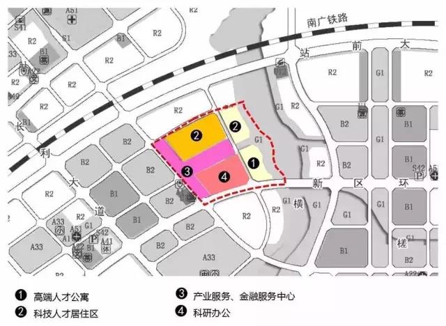 三軸:中央都市景觀軸、行政辦公景觀軸、站前商貿(mào)景觀軸