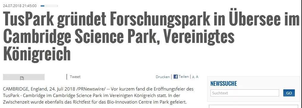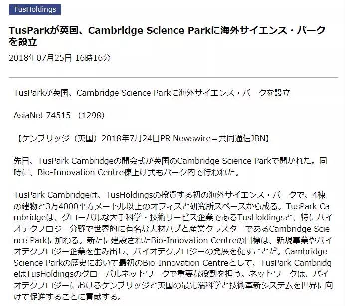 全球數(shù)百家媒體報(bào)道啟迪控股在英國(guó)劍橋投資建設(shè)運(yùn)營(yíng)科技園區(qū)