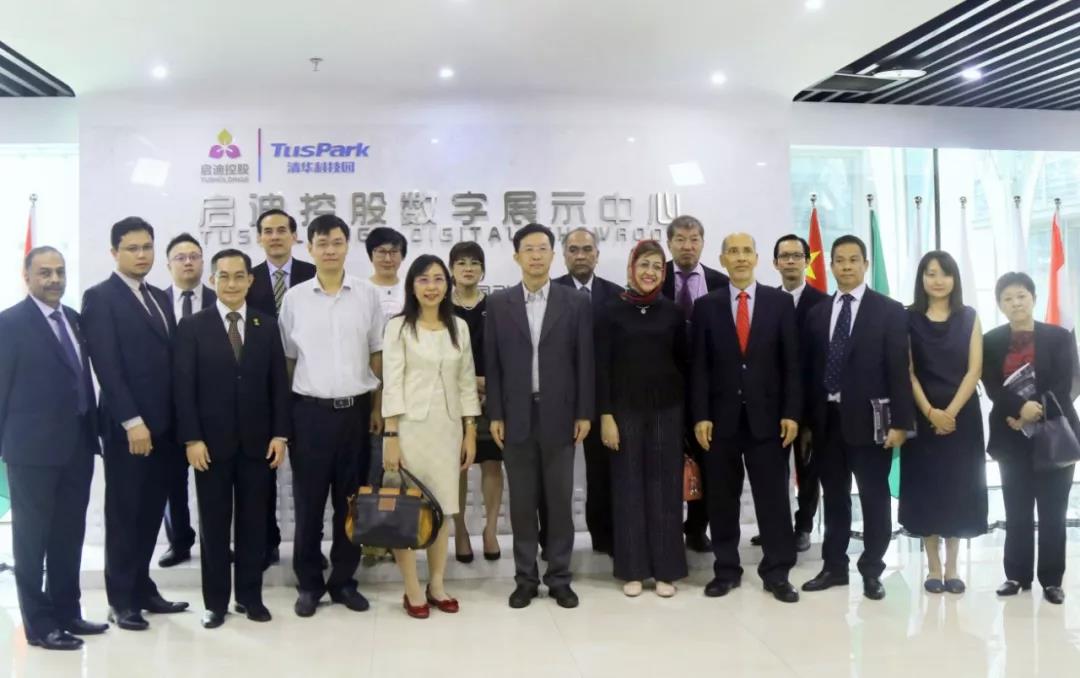 ▲ 啟迪控股常務(wù)副總裁陳鴻波(前排左六)陪同馬來(lái)西亞代表團(tuán)參觀(guān)交流